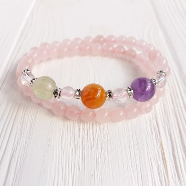 У компанії підключені електронні платежі. Тепер ви можете купити будь-який товар не покидаючи сайту.Жіночий подвійний браслет з натурального каменю Аметист, Пренит, Сердолік, діаметром 10мм і Гірський Кришталь, Рожевий Кварц, діаметром 6мм. Намистини нанизані на міцну еластичну гумку.