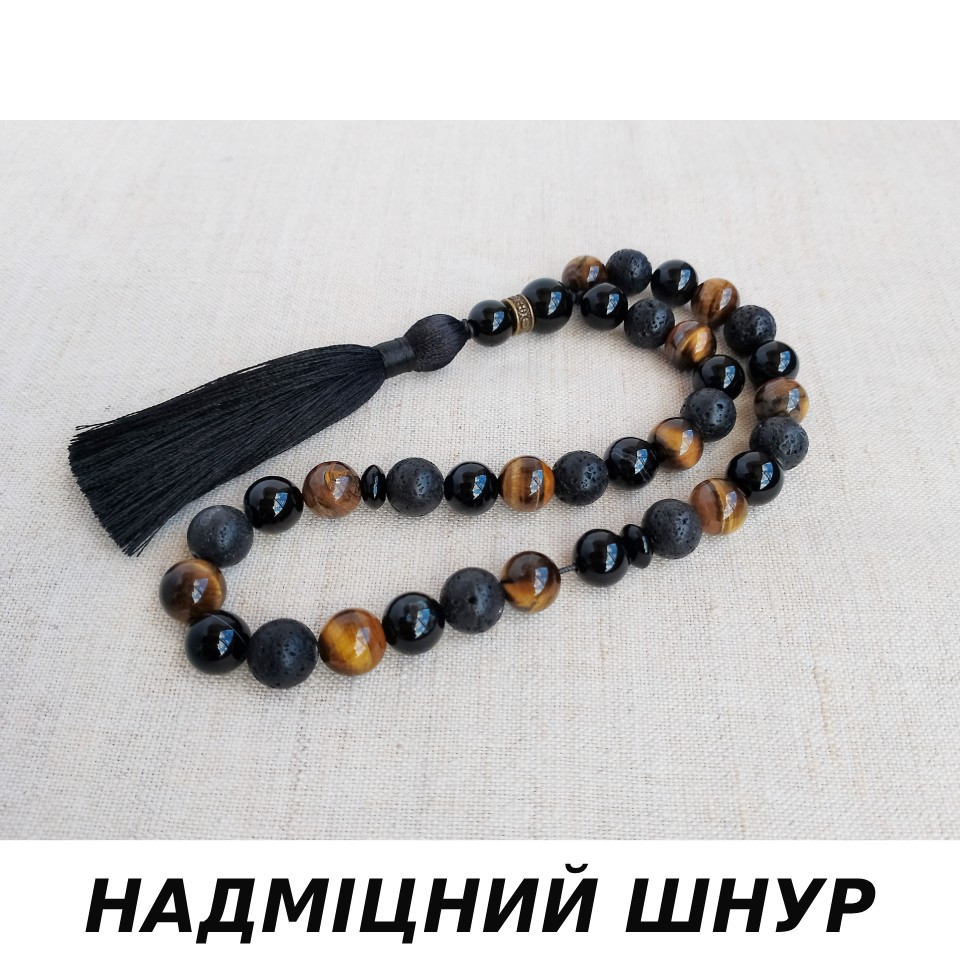 Чотки з Тигрового ока Чорного агата та Лави 33 намистини d 10мм
